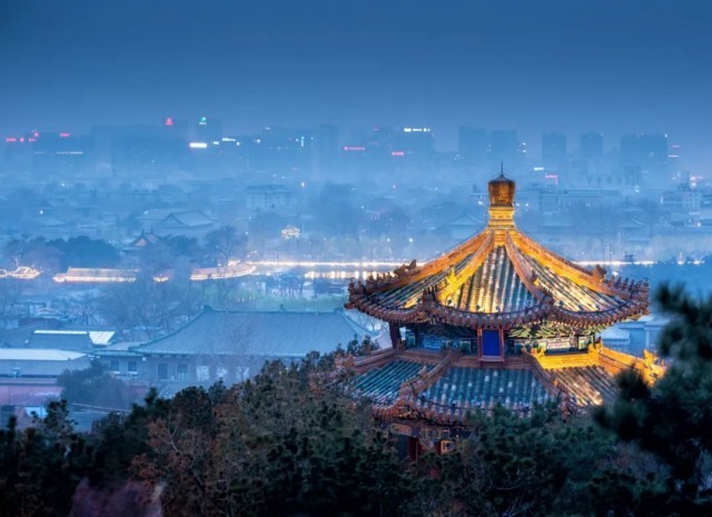 景山公园万春亭是北京中轴线上的制高点,南面俯瞰故宫,北面远眺钟鼓楼,五一期间公园里的芍药花正绽放;万宁桥始建于元代,至今仍在通行公交车和各种车辆;钟楼是7.8公里长北京中轴线的北端。