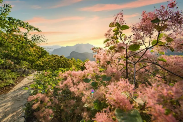 坡峰岭:五月黄栌花如烟似雾,粉红花絮覆满红叶胜地。登上坡峰岭,向西远眺上方山国家森林公园,往东俯瞰龙骨山北京人遗址,北接燕山余脉,南连广袤平原,房山之秀尽收眼底。